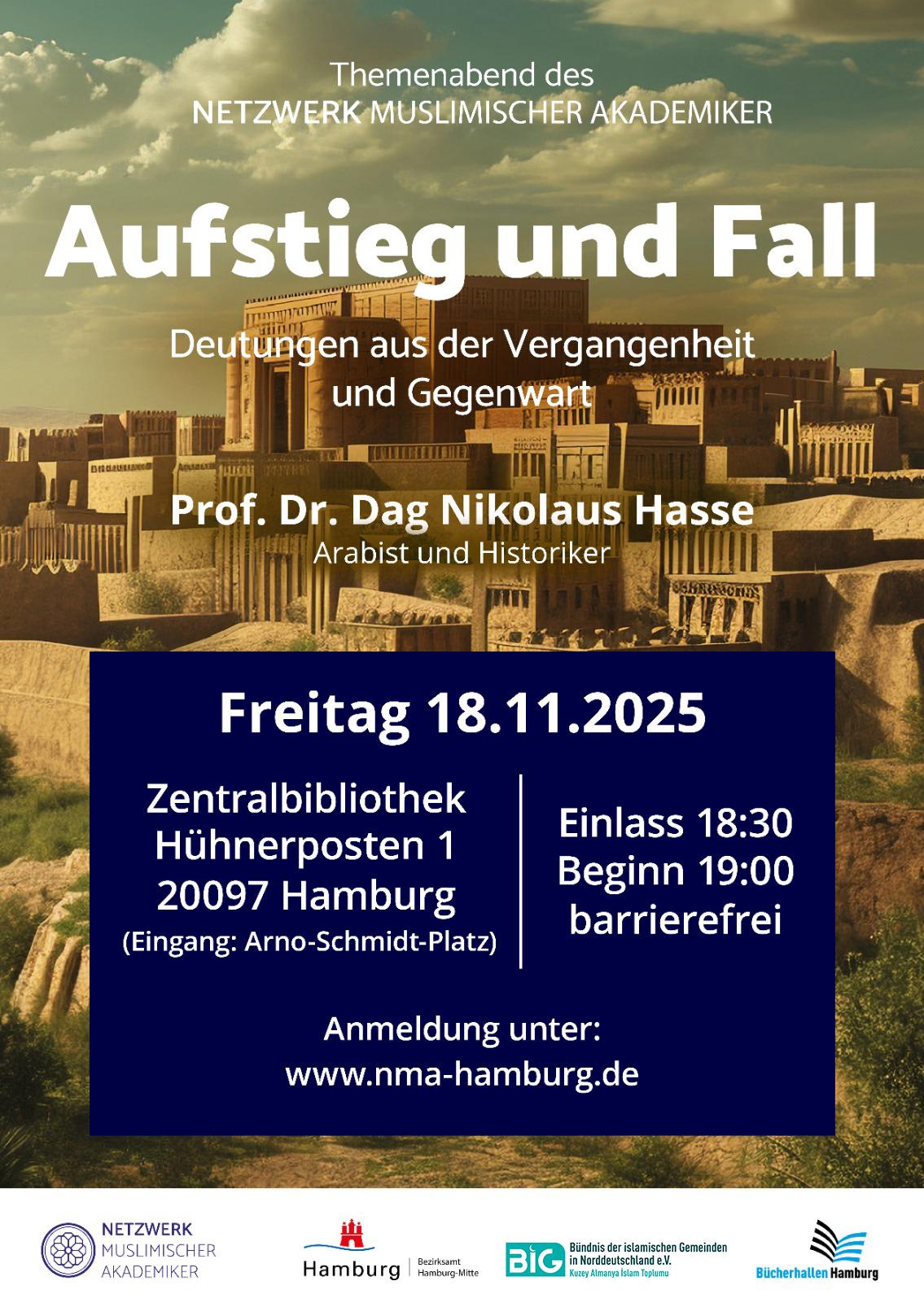 Centrum Moschee Böckmannstraße 40, Hamburg, DeutschlandWie entsteht eine Zivilisation und warum zerfällt sie wieder? Bereits im 14. Jahrhundert stellte sich der Universalgelehrte Ibn Khaldūn (1332–1406) diese Fragen und fand Antworten, die bis heute erstaunlich aktuell wirken. Die Muqaddima (übersetzt: „Einleitung“) gilt als eines der bedeutendsten […]
